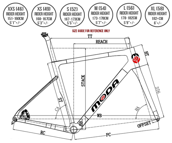 The Moda Alto is a lightweight frame weighing just 970g (±40g), paired with forks at 375g (±15g), making it an ideal choice for riders seeking performance without compromise.